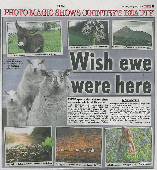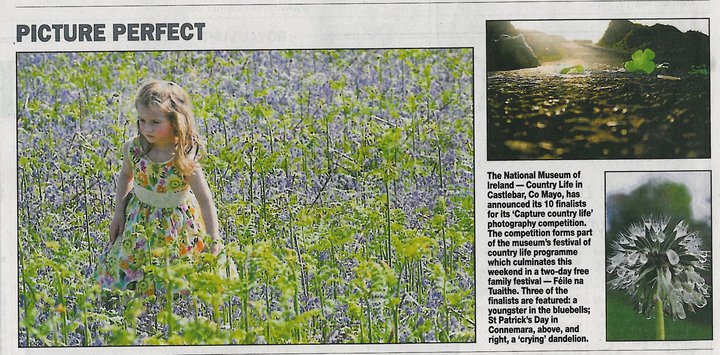 On a positive note I entered a photo competition run by Feile na Tuaithe  which is a free family festival run this weekend at the Museum of Country Life in Castlebar. Although my photo’s didn’t get anywhere, my dandelion photo was printed in three national papers yesterday. The Mirror, the Sun and the Examiner. I was so pleased 🙂