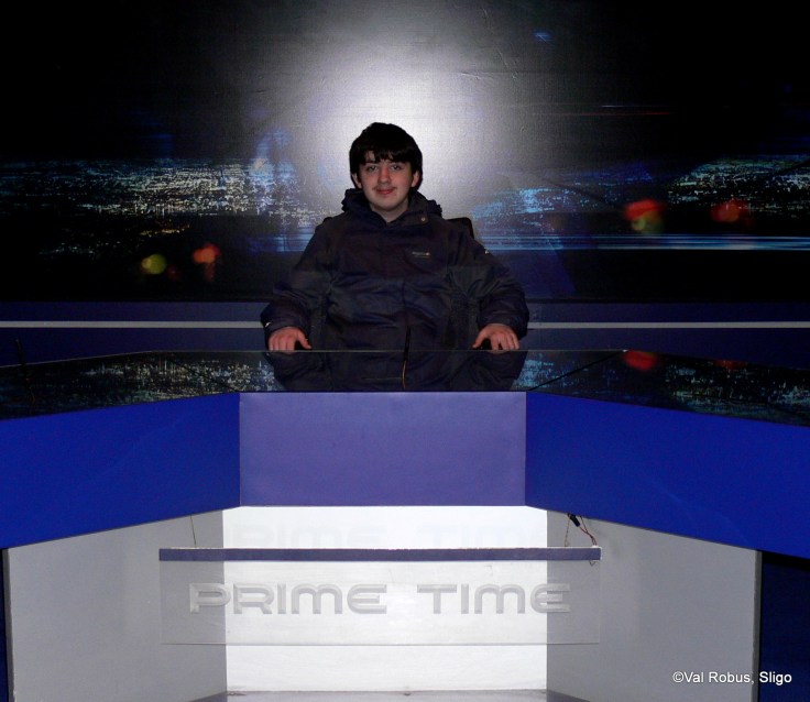 So Jono and I headed of on Wednesday. You know Jono if he thinks he will meet someone famous he’s there….plus there was food 😉 We had a tour of the RTE radio and TV studios. The Late Late Show Studio is really tiny. We got to see how they do sound effects for radio shows. We also got to hear the National Concert Orchestra. Jono even got to sit at the Prime Time desk.