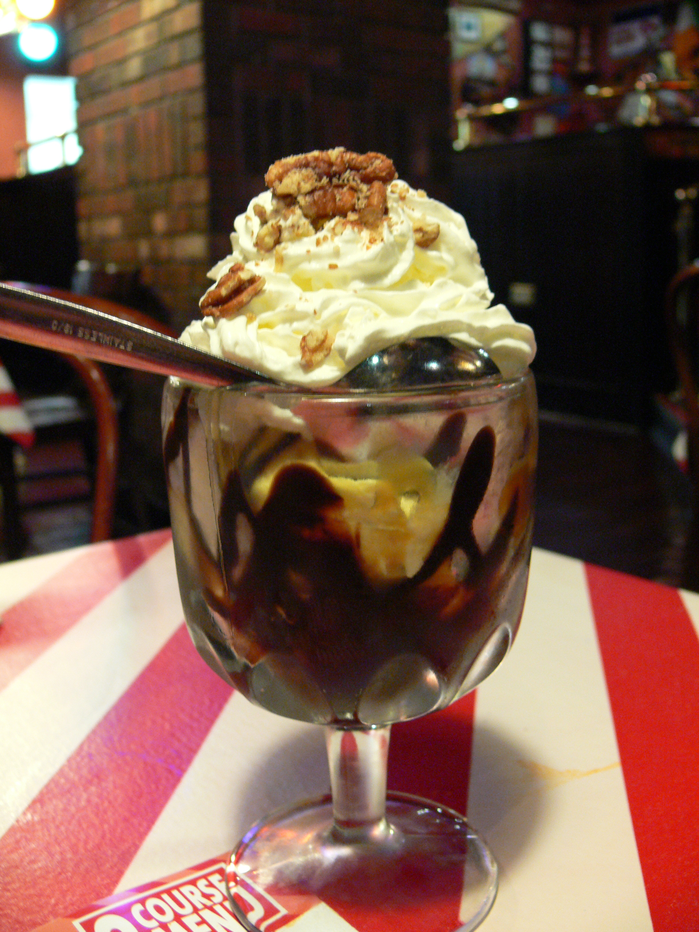 Lucy had an ice cream sundae for dessert. It really was nothing like the description. There was fudge sauce but it wasn’t hot. The ice cream tasted cheap and horror of horror’s no cherry on top!