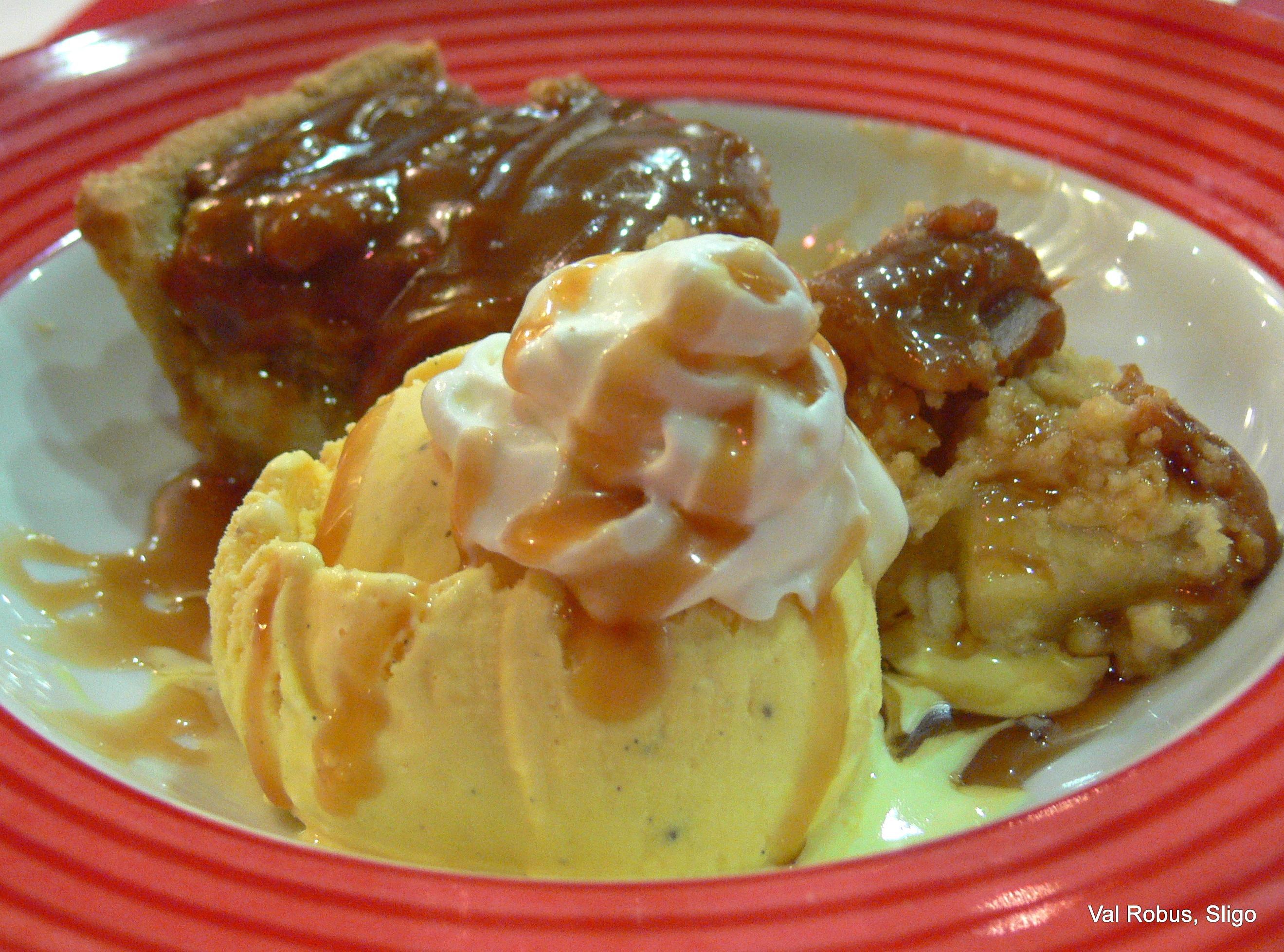 Lucy had pasta for her main course and caramel apple pie for her dessert (of course I had to try a bit!)