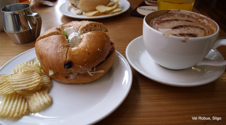 Lucy and I had our lunch in the Bagel Bar. It was the first time I’d ever been in there. I ordered a veggie bagel which looked lovely on the menu, when mine arrived it had four bits of feta cheese in it and what looked like a whole red onion….don’t you love this recession?