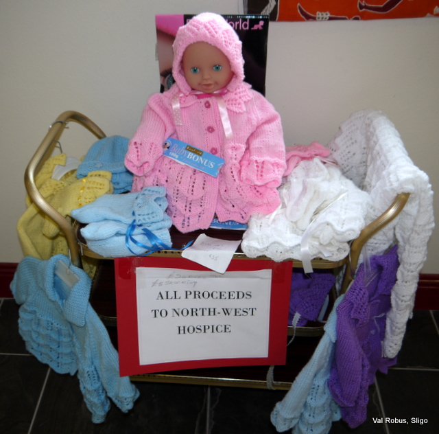 I can’t do a blog about The Roundabout without giving my mums hand-made baby items a mention. They are 20 euro a set which includes a cardigan, booties and a hat. The proceeds go to North West Hospice. She also knits beautiful baby shawls which are on sale too.