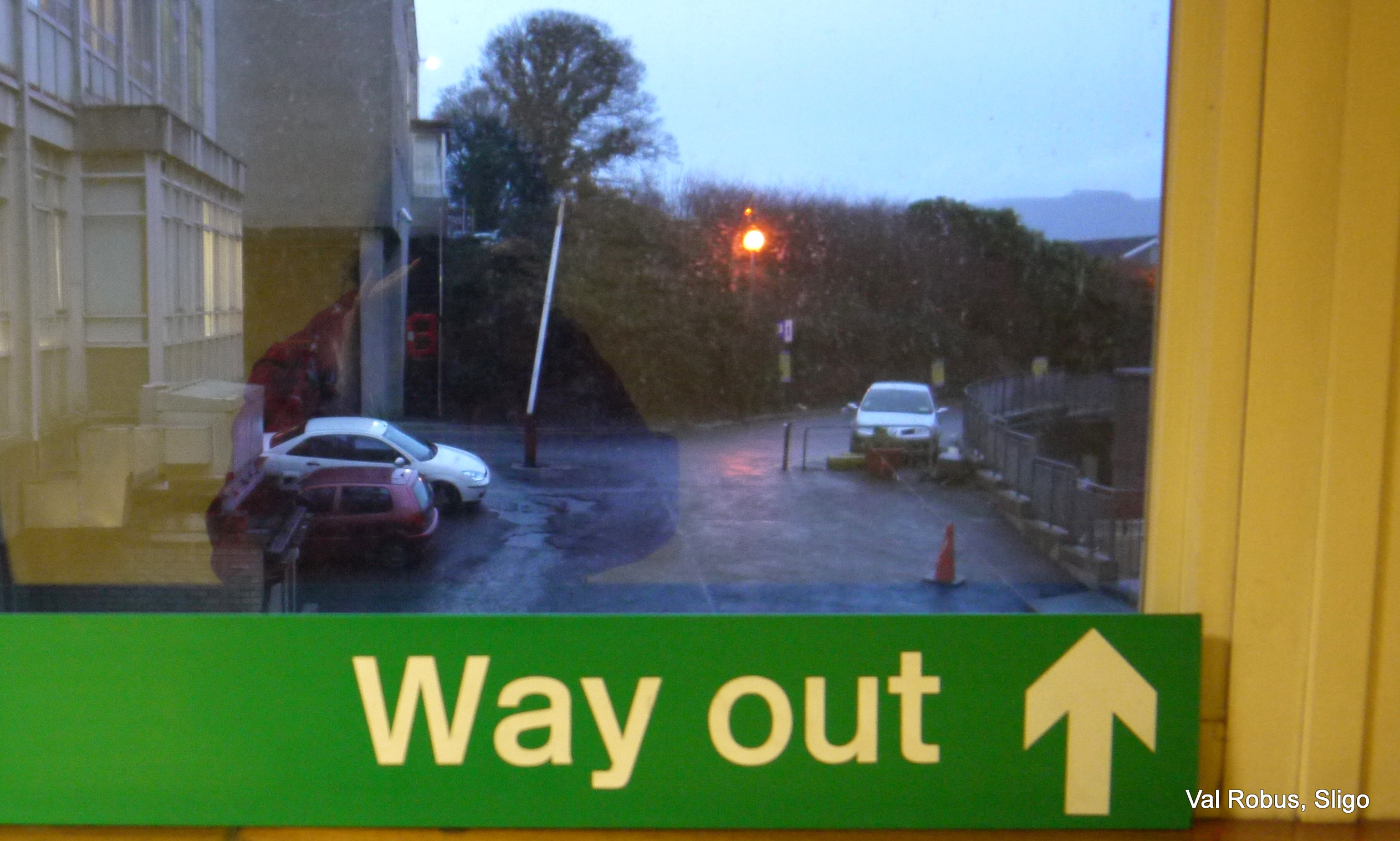 I had to take Andy for a hospital appointment during the week as well. He had to have a lung function test. While he was having it done I took Lucy for something to eat. It cost over 12 euro for a chicken curry, a scone and a cup of tea! Rip off Ireland is alive and kicking in Sligo General Hospital. I almost keeled over. Seriously how can they charge that much? When Jono was in hospital in Tallaght I used to get a curry for less than a fiver. Anyway I’m rambling now, the pic above was taken in the hospital. I really hope no one used this ‘way out’.