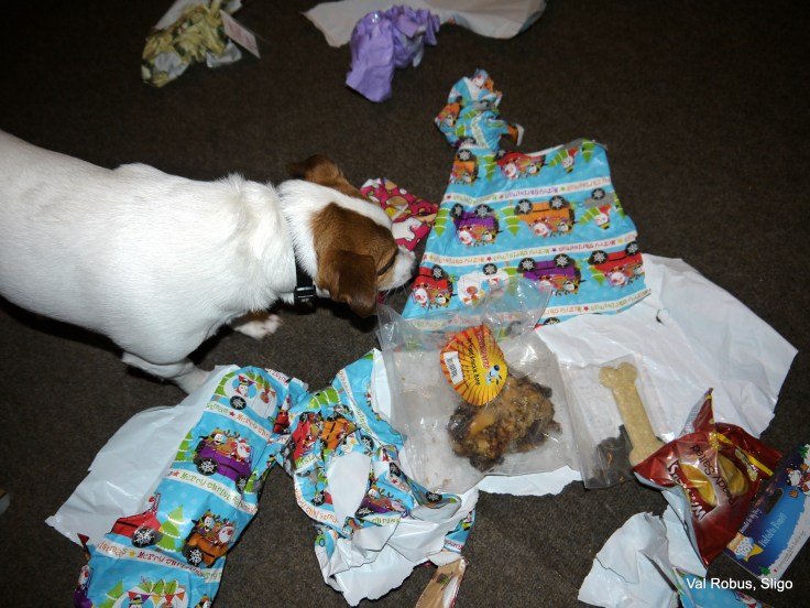 Rocket-dog was very pleased with his pressies. He couldn’t understand why there were no more under the tree yesterday morning.