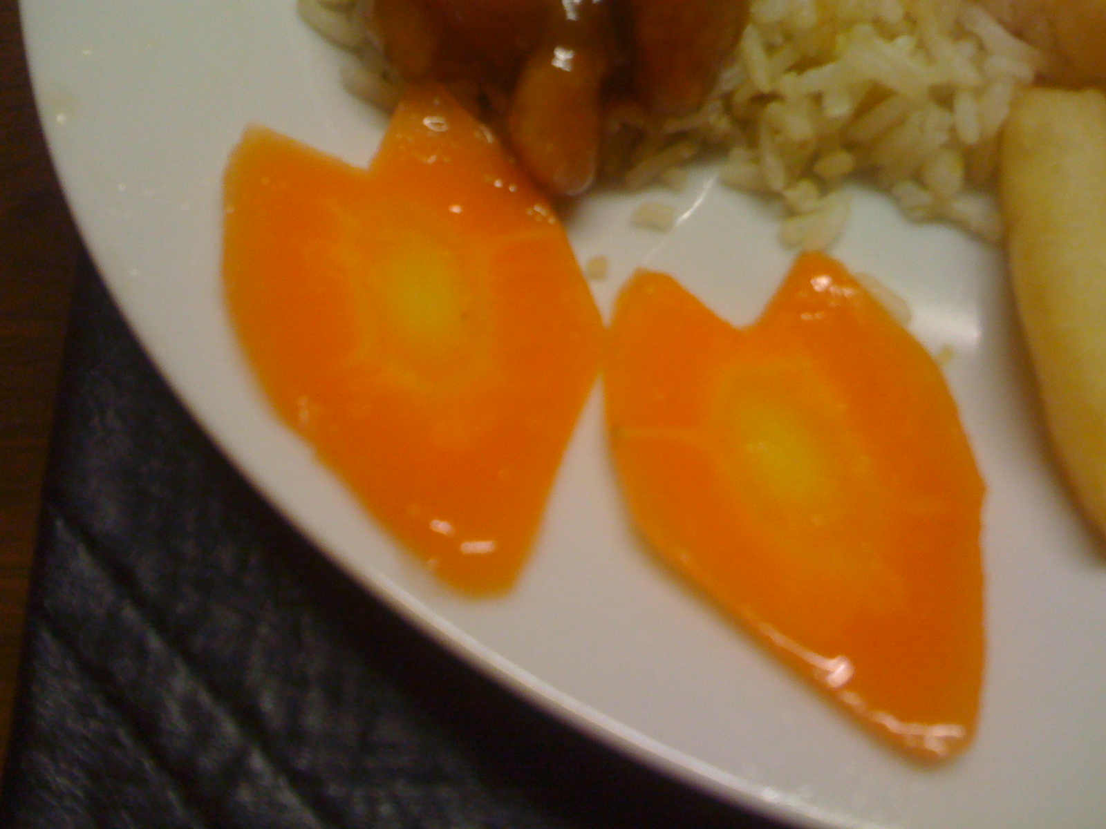 We had a takeaway from the village Chinese tonight. I love the way they made the carrots heart-shaped.