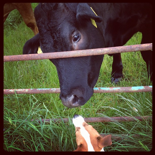 Well not really the funniest things but I love animals. Rocket-dog seems to have a bit of a thing for cows….here he is getting friendly with a neighbour.