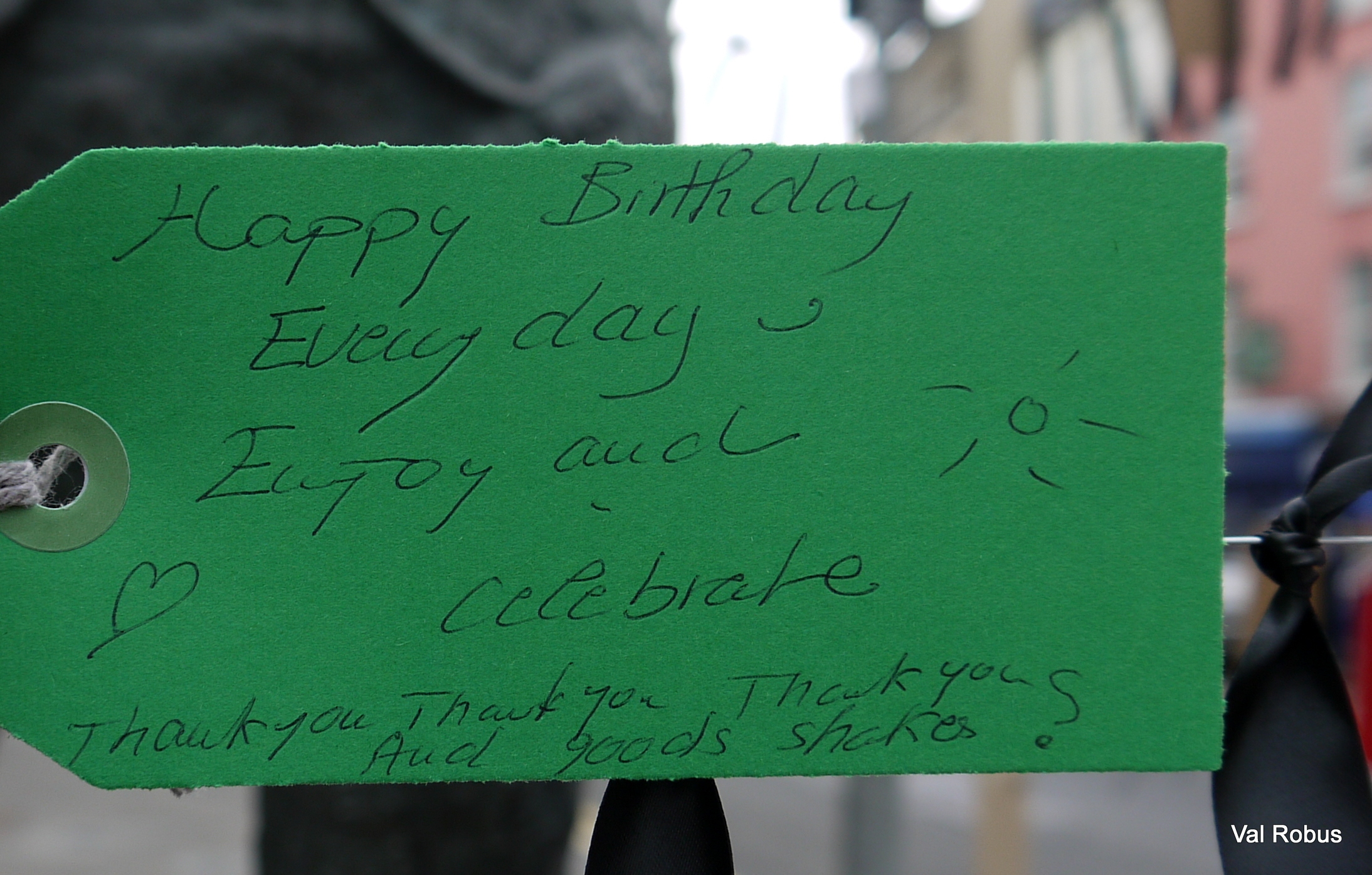 People were encourage to write messages and place them around the statue of W. B. Yeats which stands outside the Ulster Bank.