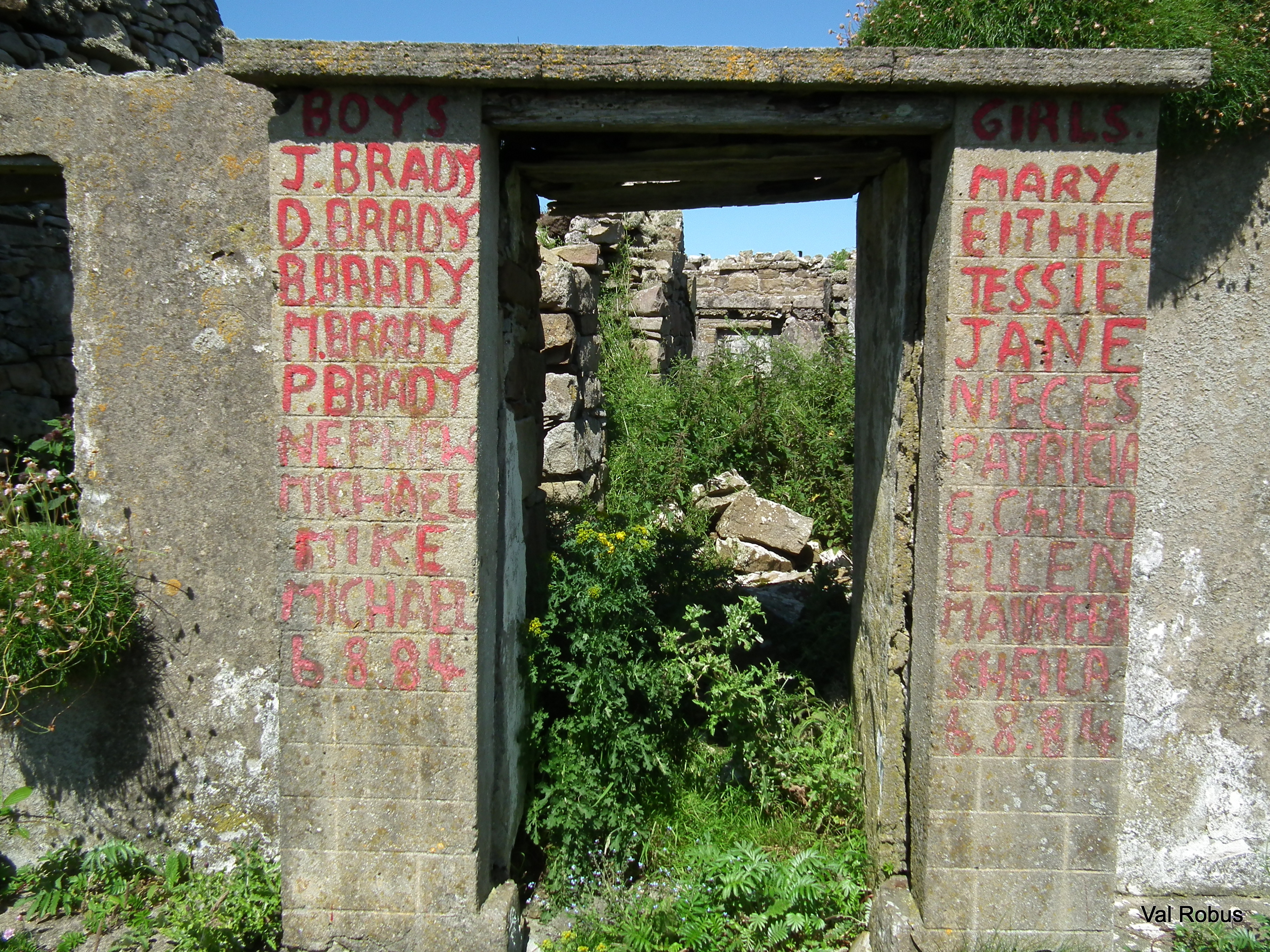 I thought it was very sad to see the last inhabited house on the island. The family have painted their names on their house. Dan Brady was the last person to leave the island, he emigrated to the U. S. in November 1948.