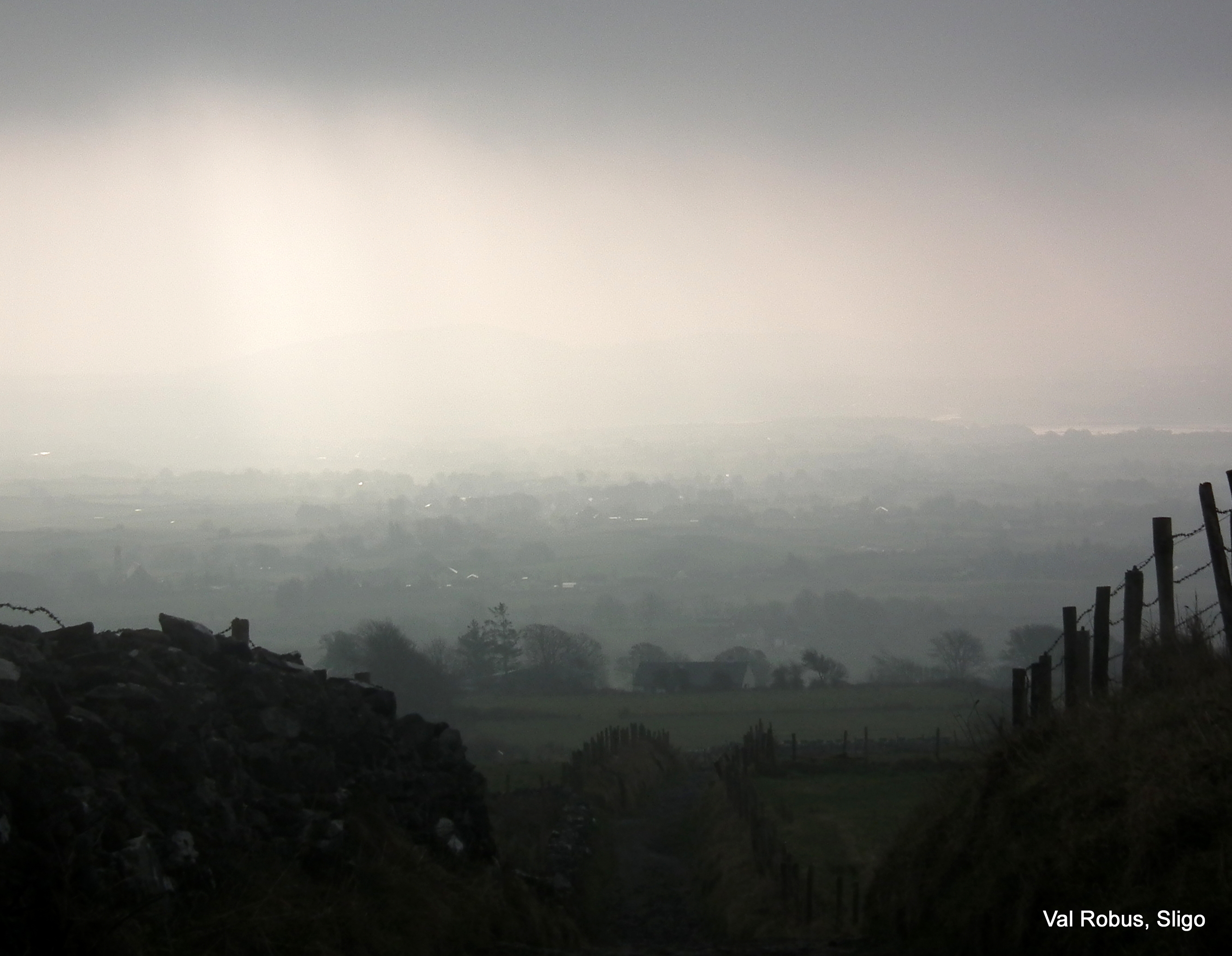 I said good morning to Queen Maeve who is said to be buried in this cairn at the top of Knocknarea.