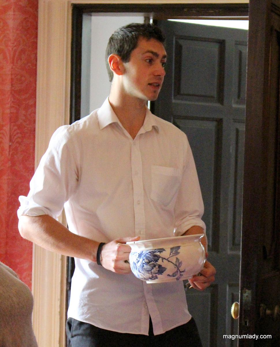 We headed back downstairs and saw the dining room, after dinner in the old days the ladies would retire to another room and leave the gentlemen in the dining room to discuss business. The trouble was the men didn’t want to leave the room to use the toilet incase someone talked about them behind their back so the poor butler had to bring in a chamber pot which was passed around the table!