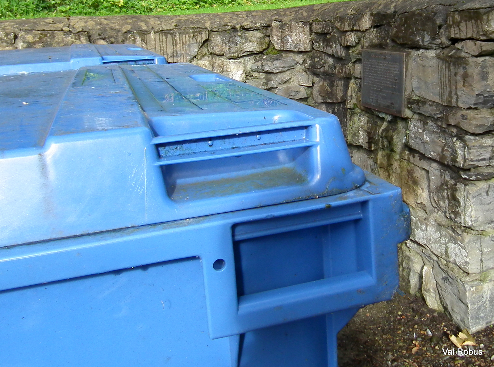Locked gateMyself and Joe McGowan from Sligo Heritage have been into the hospital a few times to see if the bins could be moved as they are against the wall made from stones from the workhouse and also blocking the plaque. A year on nothing has changed.