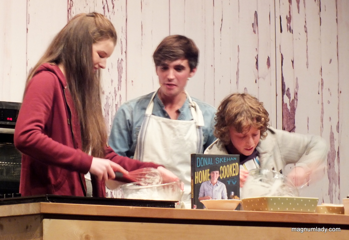 Donal has a great stage presence and bags of personality. The show was like a cross between a pantomime and a cookery show, we had to ‘Oooh’ and ‘roaarr’. We didn’t have to shout ‘behind you though!’ In the Tiramisu recipe poor Donal forgot the espresso and alcohol….’Oh no he didn’t’…’Oh yes he did’. But I didn’t mention that 😉 I got told off by Donal for tweeting about it last night, I was mortified when he called out ‘Where’s Magnumlady?’ and there was Lucy sitting beside me telling him where I was!!
