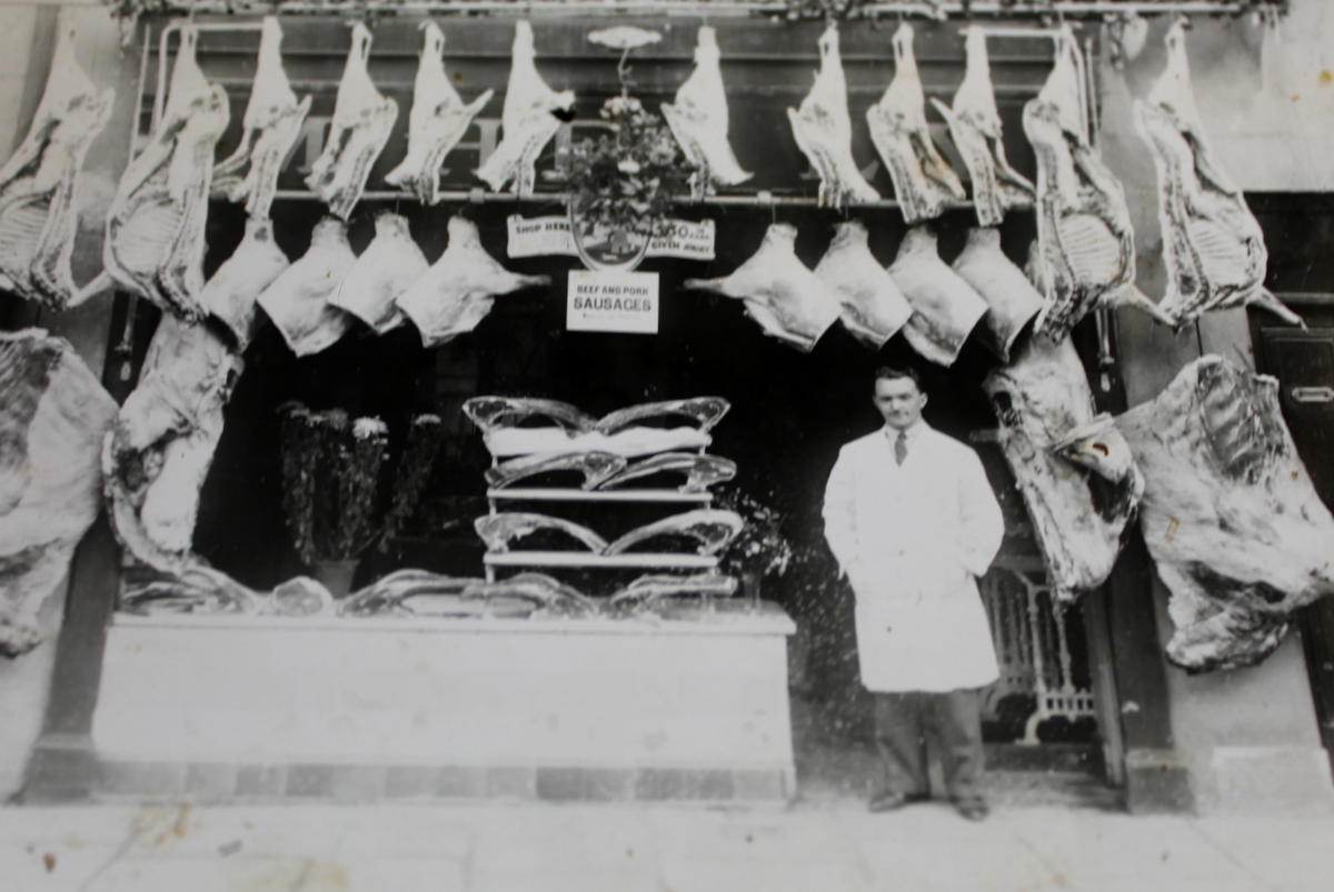 Michael showed me this photo of his father which was taken in 1928 in the shop that is now Clarke’s Butchers in Wine Street Sligo (across the road from Michael’s shop). His dad was born in 1898 in Mallow and moved to Longford to escape the Civil War and from there moved to Sligo. He built his own butcher’s shop in 1930 (the shop that now belongs to Michael). He smoked all his life and died when he was 90 years old.