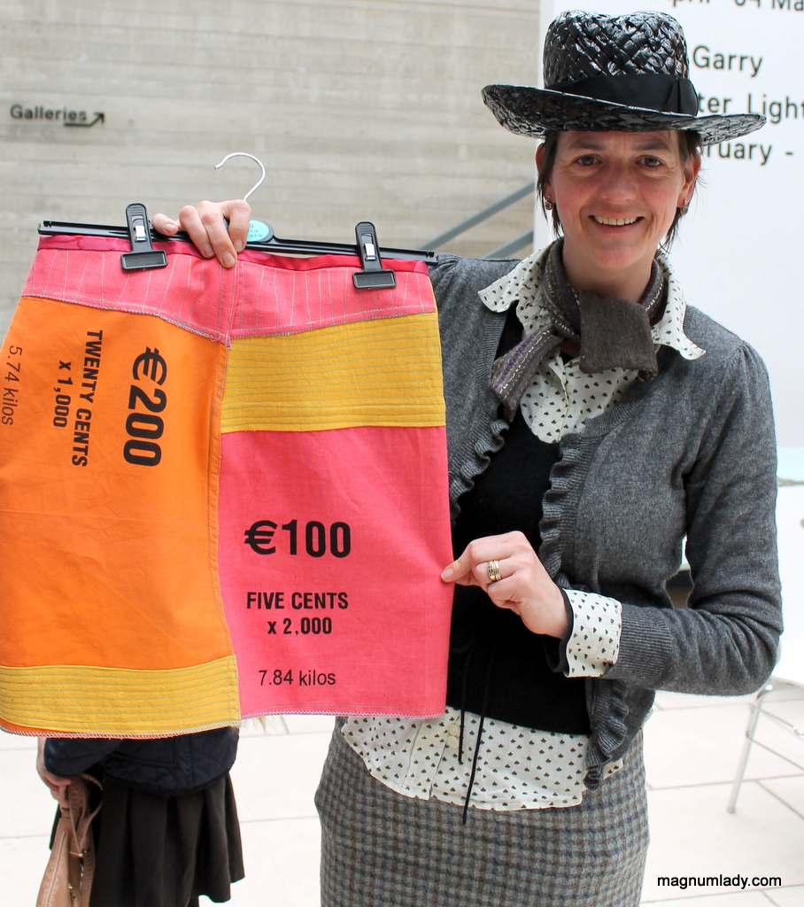 There were some gorgeous dresses, shoes and jackets for sale from DuMore Embroidery and the Cairde Arts Festival Stall. I love the skirt below, made from money bags by DuMore Embroidery.