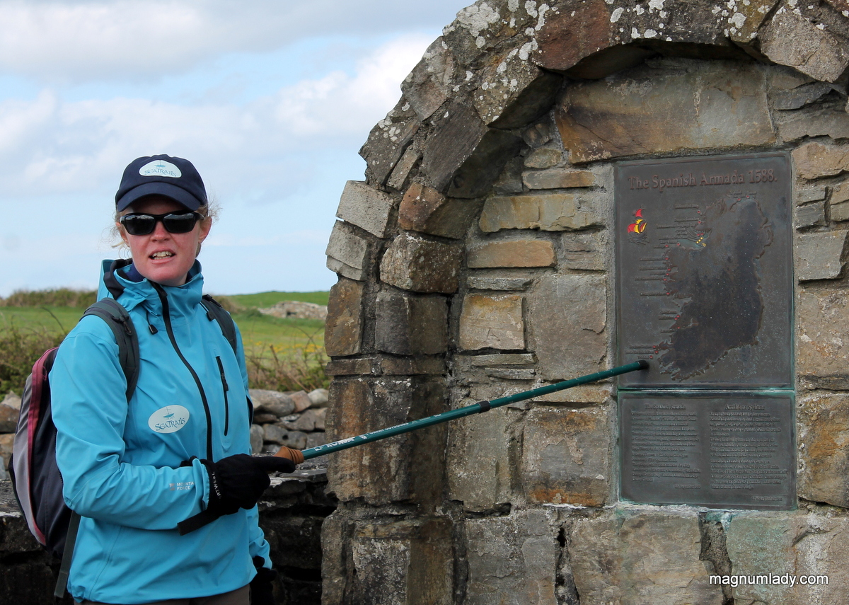 Auriel showed us the Spanish Armada monument and told us about the ill-fated fleet of the Spanish Armada. In 1588, King Phillip II of Spain had ordered over 130 ships to sail from the port of La Corunna with the intention to invade England. The attempt failed due to the attack of English ships, clever tactics of Queen Elizabeth and unfavourable winds. The ships tried to flee back to Spain but over twenty-five Spanish ships became wrecked off Ireland’s coast. There are three wrecks off the coast of Streedagh and we got to see roughly their location. No one has dived down there since 1985 so it’s not really known precisely where they are now.