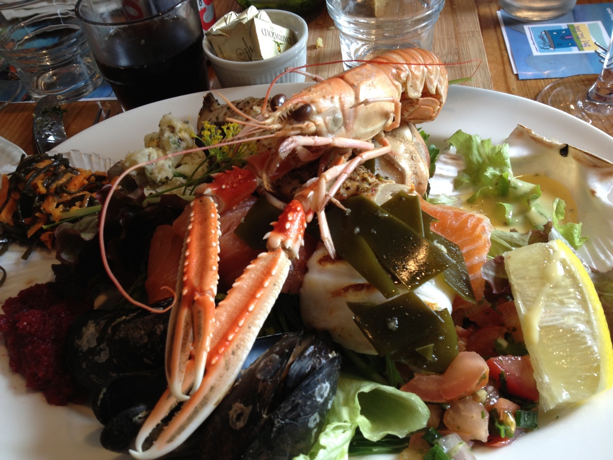 This was a seafood tasting platter, there was salmon, crab, squid, mackerel, mussels and much more. We also had seaweed bread with seaweed pesto. Even the desserts contained seaweed and you’d never have guessed it. Lucy was very impressed by the waiters. She said she’d go for the food and stay for the waiters! 😉