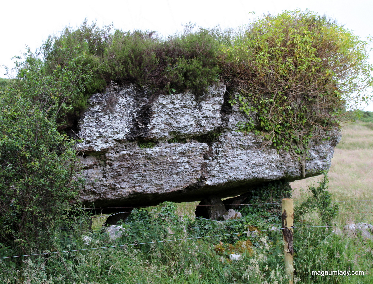 When we emerged from the forest we saw The Labby Rock which is a unique Portal Dolmen, with a 70 tonne capstone, built during the Neolithic Period (about 4,000-2,500 BC). In Irish Mythology it is associated with the burial place of Nuada of the Silver Arm, a King of the Tuatha de Danann who was killed by Balor of the Evil Eye, leader of the Fomorians, during the battle of Moytura. There is a lovely seat up by the rock surrounded by foxgloves and other wild flowers.