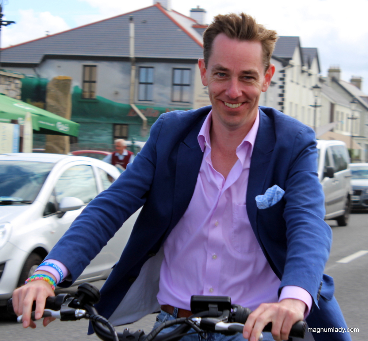 It was a great day in Sligo today. Ryan Tubridy came to Strandhill to talk about the Wild Atlantic Way and more. He tried out Wild Atlantic Wheels wonderful bikes (I decided he might need a bit of a push). Thanks to Rory O’Brien for taking the photo.