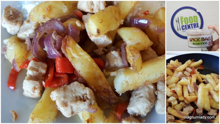Going back to our dinner, we saw The Food Centre have started selling a Spice Bag mix. We had to give it a try. If you aren’t sure what it is the Chinese Takeaways sell spice bags and it’s also used in their Salt and Chilli chicken. We weren’t sure if it would be the same but Lucy added it to fried peppers, onions, Quorn pieces and chips and it was the business! Now you wouldn’t be eating it every night of the week because it has a really high salt content but it’s delicious as an occasional treat.
