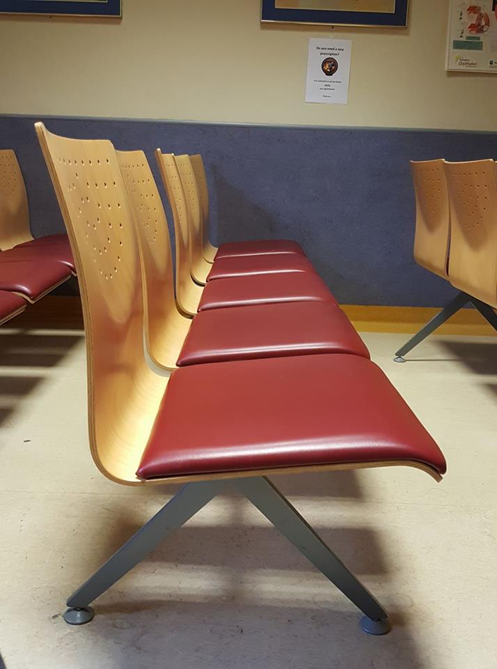 They always seem to call everyone in at the same time and the consultant doesn’t arrive until later so we knew there would be a wait. We didn’t expect a three-hour wait though and as you can see from the photo above the seats they aren’t the most comfortable, particularly for anyone with a spinal problem.