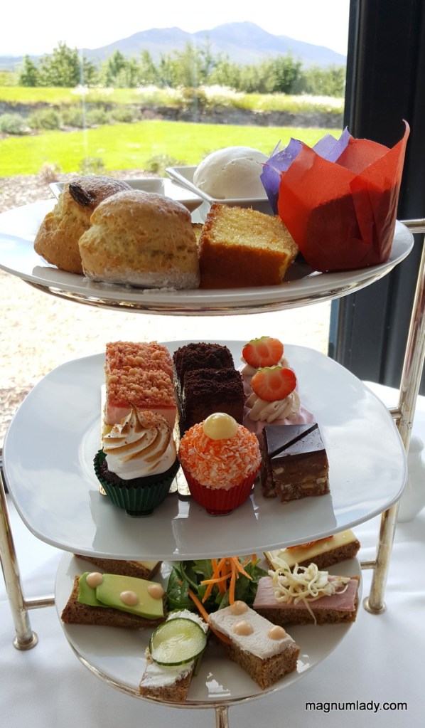 Afternoon Tea is served in La Fougère Restaurant which has one of the most stunning views I think I’ve ever seen. I don’t think I’d ever watch TV if this was my view. We relaxed as we watched the clouds drift over the majestic Croagh Patrick Mountain.