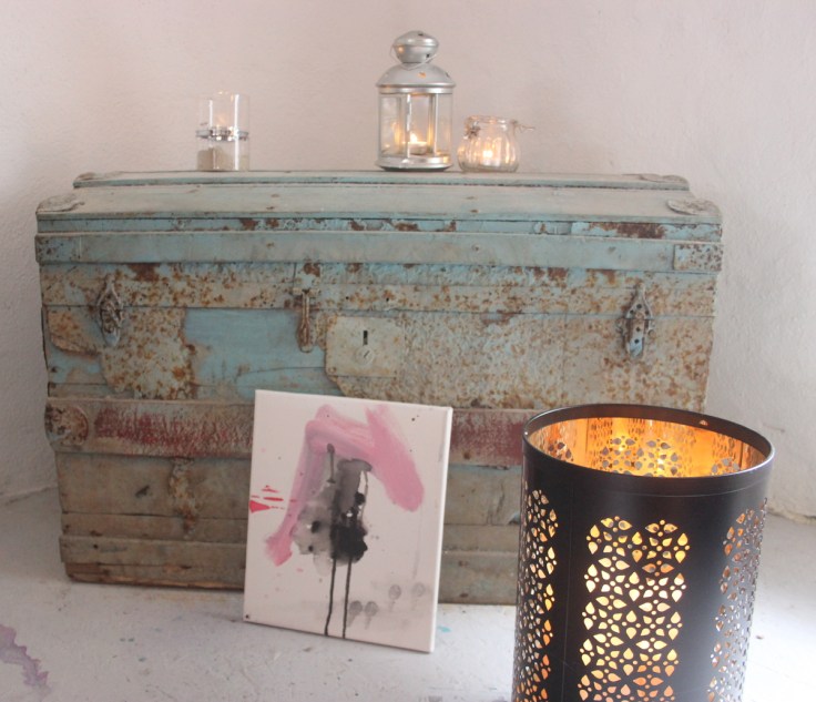 To begin with we each shared our story – whatever we wanted to share. I was inspired by one of the participants to share more of mine then I had intended to, but I’m quite an open book so I’m glad I did. We took an item that resonated with us, mine was a closed box. This was how I used to live, keeping all my worries in a closed box in my head. We also took an Oracle card, mine was Surrender to your Soul’s Path. We were now all Pilgrims on Deck and we made our way in to the ‘creative’ room where our own blank journals were waiting for us.