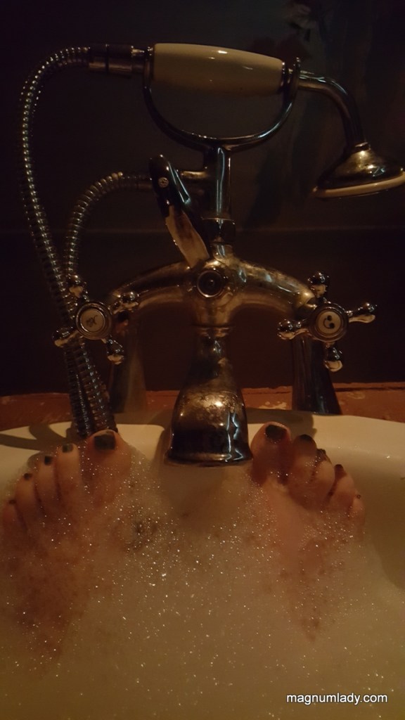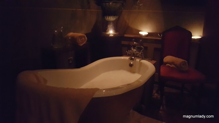 We went into a double bathroom and sank into our aromatherapy baths and let our cares drift away. Usually I’d fall asleep in a bath but I can’t seem to relax that much lately. It was gorgeous though.
