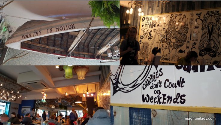 I love Hooked, it’s one of the newest places to eat in Sligo, it’s got a really cool and quirky interior; a boat hanging from the ceiling, unusual lighting, a cosy corner and a gorgeous view over the river.