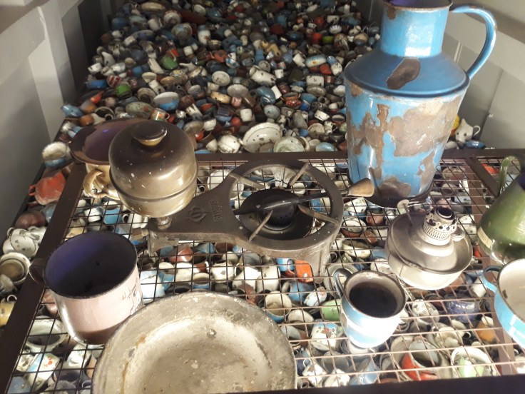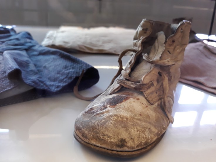 We heard how the poor people were split into two groups. The young enough, fit, people were sent to work in the camps. The eldery, children, infirm people thought they were going for a shower. They were ordered to leave their clothes on numbered pegs so they’d ‘remember’ them when they came out. Of course we know that they didn’t come out. Their belongings were shifted through and anything of value was kept.