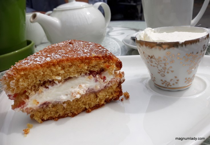 It wasn’t all art we did, of course, have to check out some of the cafes. I broke the diet for the day and had been hoping for the cup of chocolate that I’d seen on Facebook at the King House tearooms – they didn’t have it so I made do with a slice of cake instead – it’s a hard life! We also had a lovely coffee in The Bazaar Coffee Shop which is a gorgeous little cafe, a haven of blue with a beautiful secret garden at the back of the premises…well worth a visit.