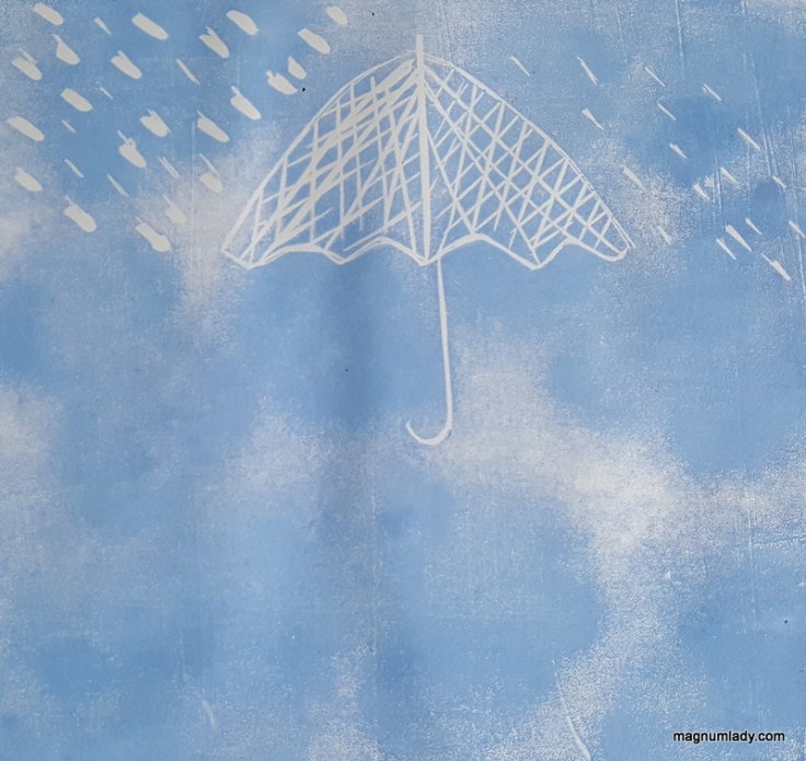 My other lino print was just random, trying out the different blades and just enjoying myself. When both linos were ready we Phoebe joined Liz and showed us how to ink them up. My umbrella was a hand print and my random one was done through the printing press. I’m pleased with both of them, not bad for a first attempt.
