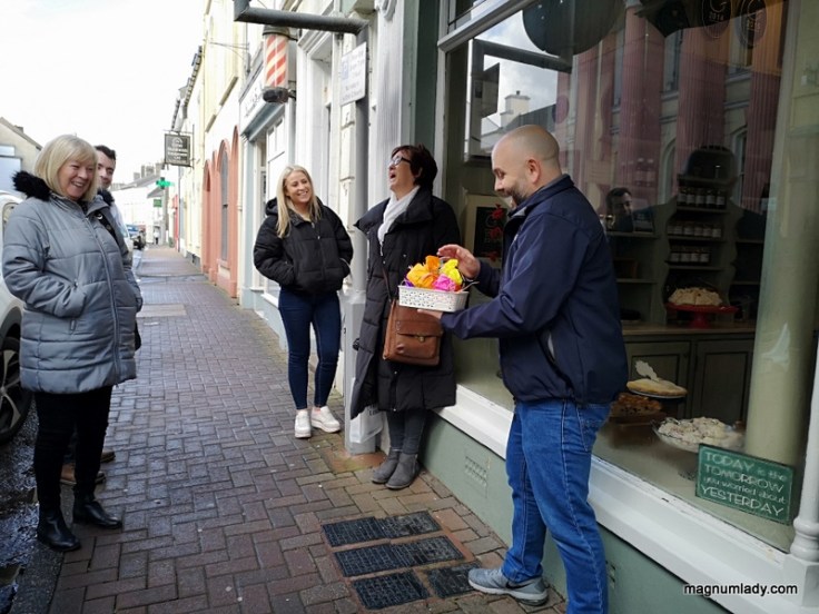 We met the lovely ladies in the Castle Cafe where we had tea or coffee and we braved the elements to eat our way around Enniskillen. Mark took us along the river where we got a lovely view of the castle and told us about the medieval feasts that would have been held there.