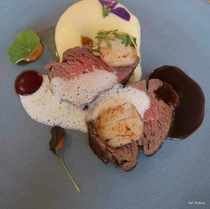 Course 5 was ‘Reefed Medallions of Beef’. Melt in the mouth beef with lemon buttered scallop, served with pomme puree and bacon foam. This was a big course but absolutely gorgeous. I don’t think I’ve ever had a scallop before but it was delicious. I loved the flavour of the beef, it had a kind of peppery taste, it was so lovely.