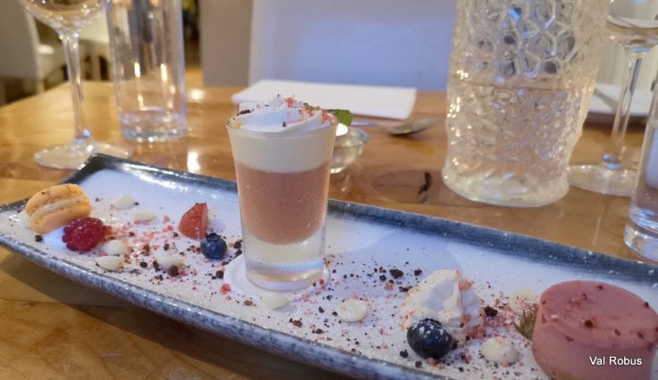 Course 8 was ‘a selection of petit fours’. Again this will chance depending on the season, products, etc. I had a tiny orange macaron, a delicate berry cheesecake and a trifle. All beautiful.