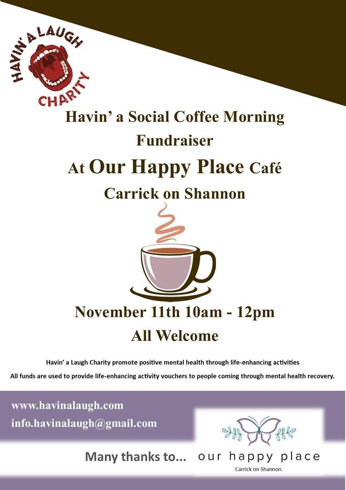 If you are a regular reader of the blog you’ll know that I started a social coffee morning in Sligo. There were two reasons for the morning. One was because at the height of my depression I missed someone to go for coffee with and I wanted others to realise that they aren’t alone. The second reason was to give something back to Havin’aLaugh – the charity who helped me so much.