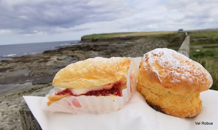 It was a big box containing sandwiches, scones, jam, cream, and some little chocolate sponge cakes, rocky road and the nicest puff pastry cakes I’ve had in years. We had our Afternoon Tea picnic at Downpatrick Head – which is always well worth a visit.