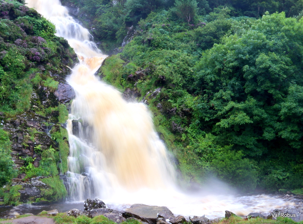 When I left the café I made my way to Assaranca Waterfall, this is just outside Adara, on the way to Maghera Beach. It’s a narrow enough road but there are places to pull in to let other cars pass, and as I’d chosen the worst day of the ‘summer’ to go it was quiet enough. I will never forget the stunning view and I drove around the corner and saw the waterfall, it’s the most magnificent waterfall I’ve ever seen in Ireland. The poor weather and torrential rain that we’d had in the previous few days were all worth it, when I saw this beauty in full flow. I was totally blown away, it was the most amazing sight, I’d seen photos of the waterfall but nothing could have prepared me for just how spectacular it was.