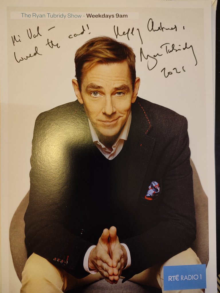 I also got a signed photo from Ryan Turbridy, I sent him a painting and a card and was delighted to a reply.