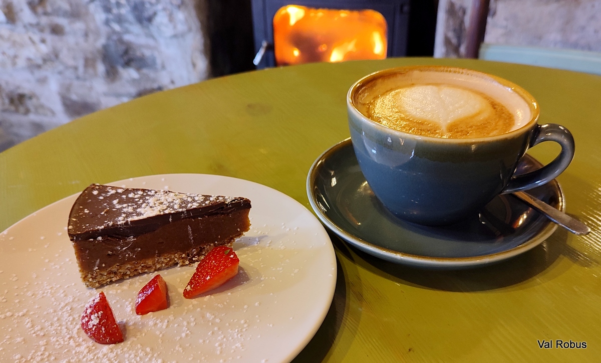 It’s a gorgeous cafe, with a warm and welcoming atmosphere. You can either sit looking out at the river or next to the woodburning stove.