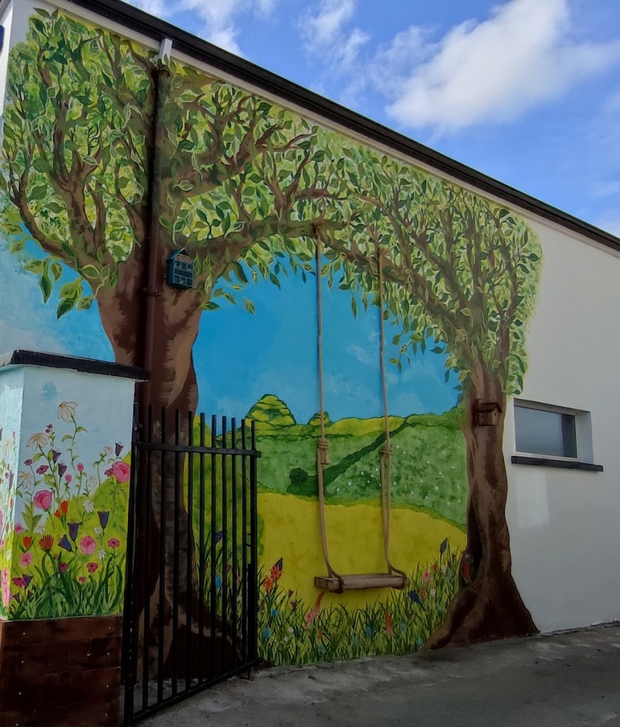 Chillin Time Cafe is a brand new cafe in Ballymote, Co. Sligo. I’d been watching the progress of the mural over the last couple of months and was delighted to see the cafe open. The mural is beautiful, painted by local artists Samantha Rausch and Ami Scanlon, and inspired by the view of the family’s homeplace in Carrigans Lower, Ballymote.