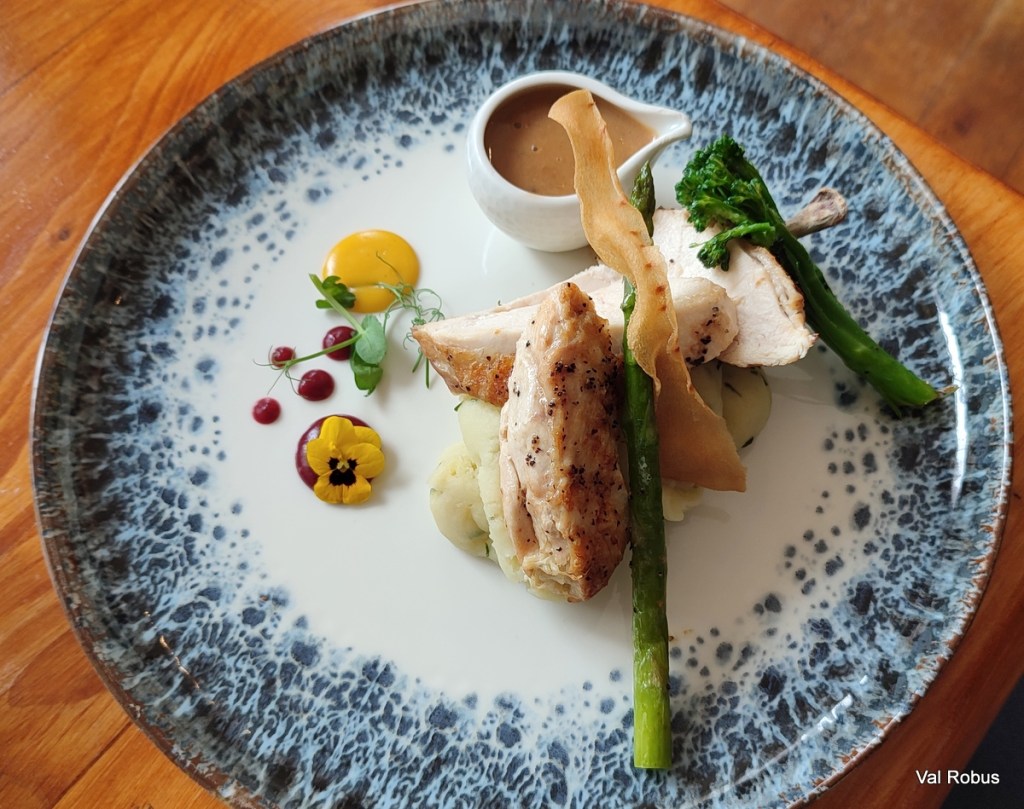 For the main course, I was tempted by so many dishes, so it was a hard choice for me to choose, and I’ve already decided that next time I’ll have the Mushroom, Spinach and Blue Cheese Lasagne – which sounds amazing. This time I had the Supreme of Irish Chicken – Irish Chicken Breast, which was served on chive pomme puree and came with a gorgeous mushroom sauce, made with Athrú whiskey (which is produced in Sligo).