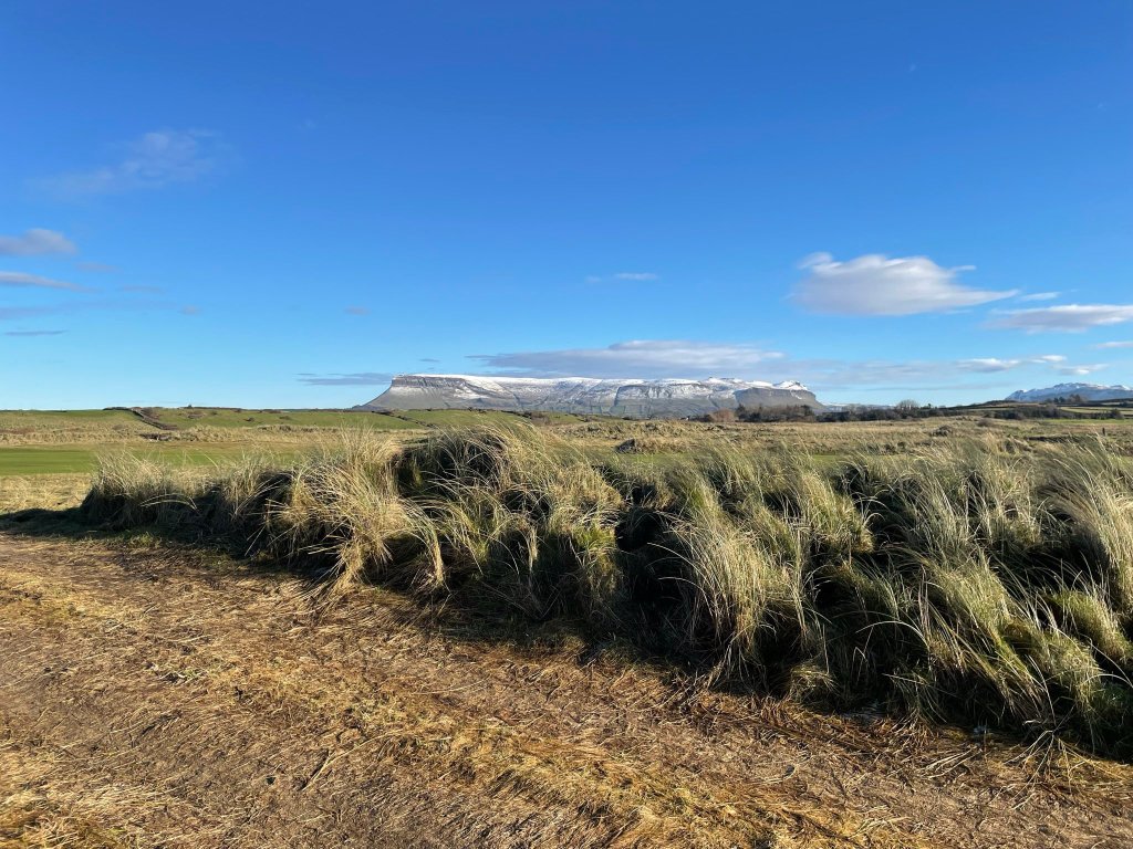 Snowy Ben Bulben as seen from the 2nd beach in Rosses Point, Sligo, by Oonagh.
