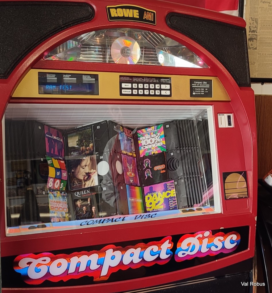 The first thing I noticed was the door sign, which made me smile, pride of place is a jukebox, which works – in case you fancy some music while you shop!