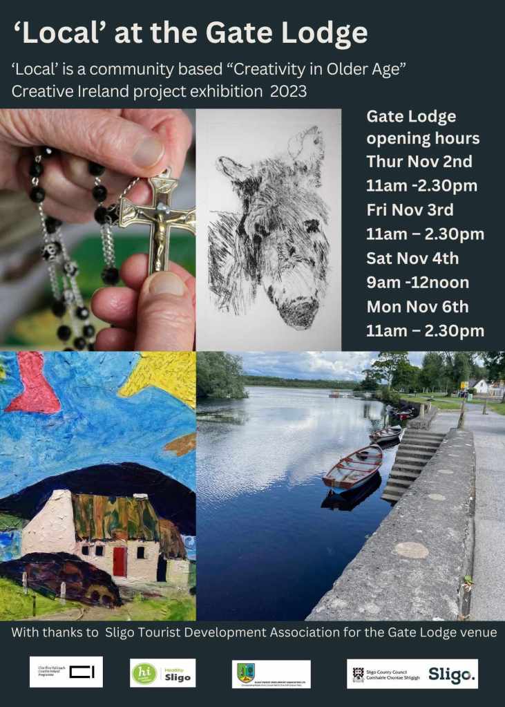 Sincere thanks to everyone who took part and helped me on this project, and well done to the other artists in the ‘Local’ Project; Aideen Connolly, Clare Doohan and Michele Feeney. You can see our collective exhibition in The Gate Lodge, Doorly Park, Sligo. Thursday 2nd November and Friday 3rd November 11am – 2.30pm, Saturday 4th November 9am – 12 noon, and Monday 6th November 11am – 2.30pm. I’ll be there on Saturday, and I hope to see some of you there.