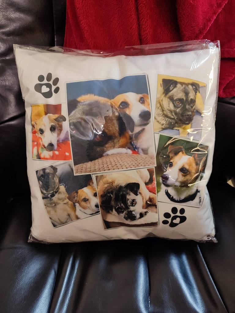 The house is very quiet without Rocket-dog, I’ve been blown away by the kindness of others. My good friend Ann arrived with the most beautiful cushion as a tribute to both Rocket and Puggly, it was just so thoughtful and lovely. Erin and Julie sent me a lovely suncatchers, Kate sent me a little memorial card with Rocket’s photo. The kindness of people is just wonderful and the messages and emails I’ve received have been so welcome too, it’s really one of those times when you find out who really cares.