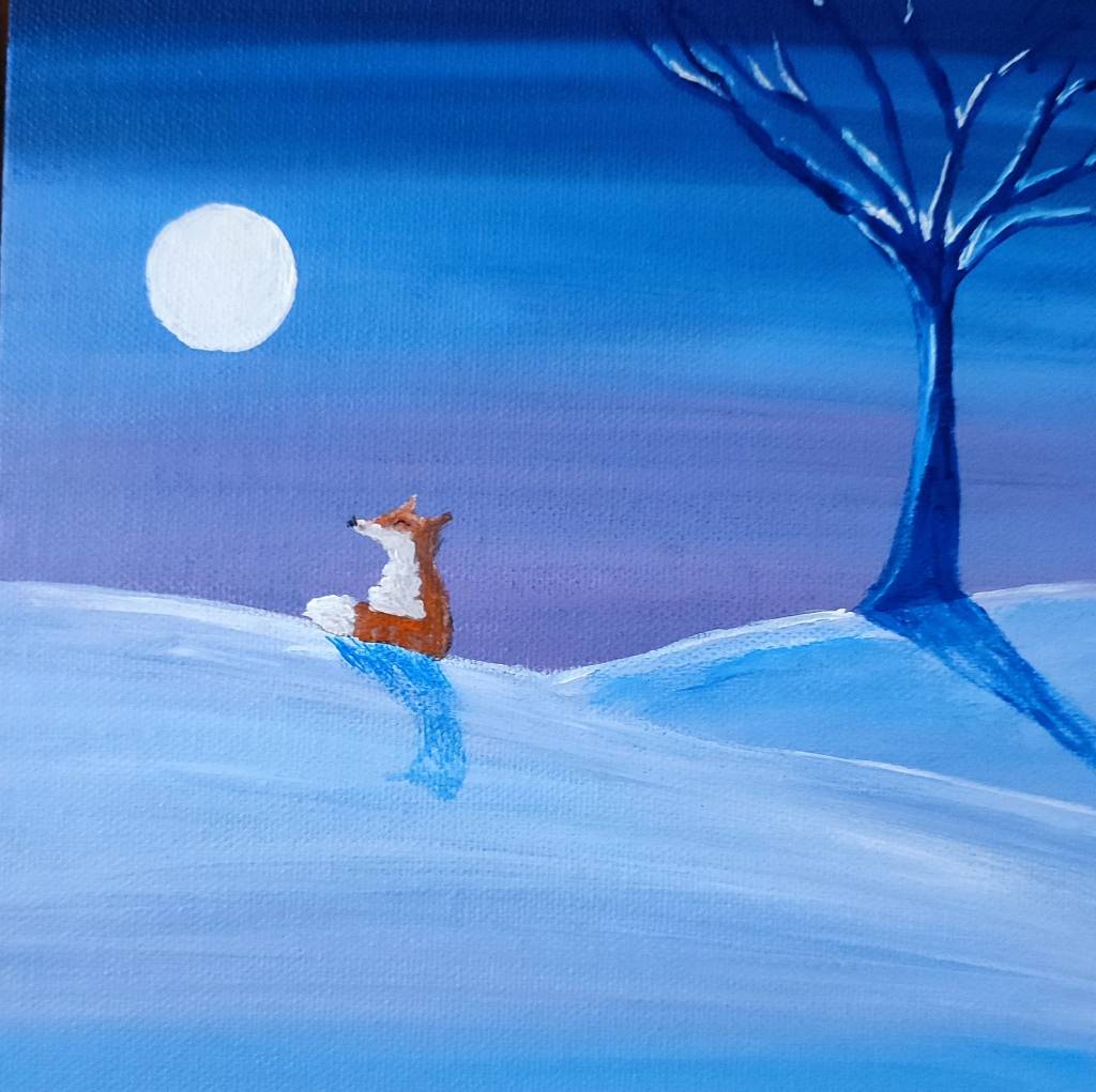 I managed to get back painting, this one appeared, inspired by the Winter Solstice. Painting is wonderful to help me relax, I’d be lost without it.