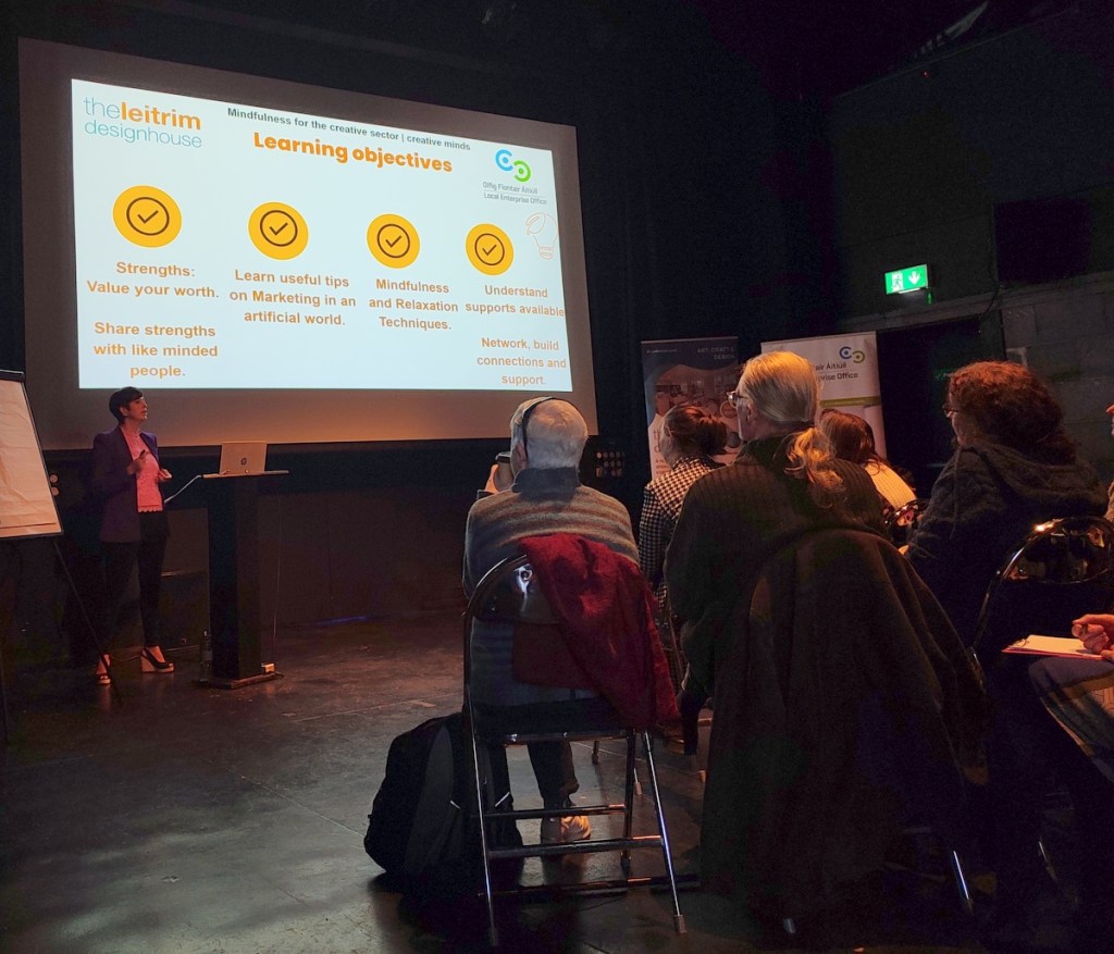 Yesterday I went along to the Mindfulness for the Creative Sector | Creative Minds event hosted by The Leitrim Design House and the Leitrim Local Enterprise Office, at The Dock in Carrick on Shannon. I wasn’t too sure about the mindfulness part, if you read the blog you’ll know about my history with mindfulness, if you missed it you can read about it here.