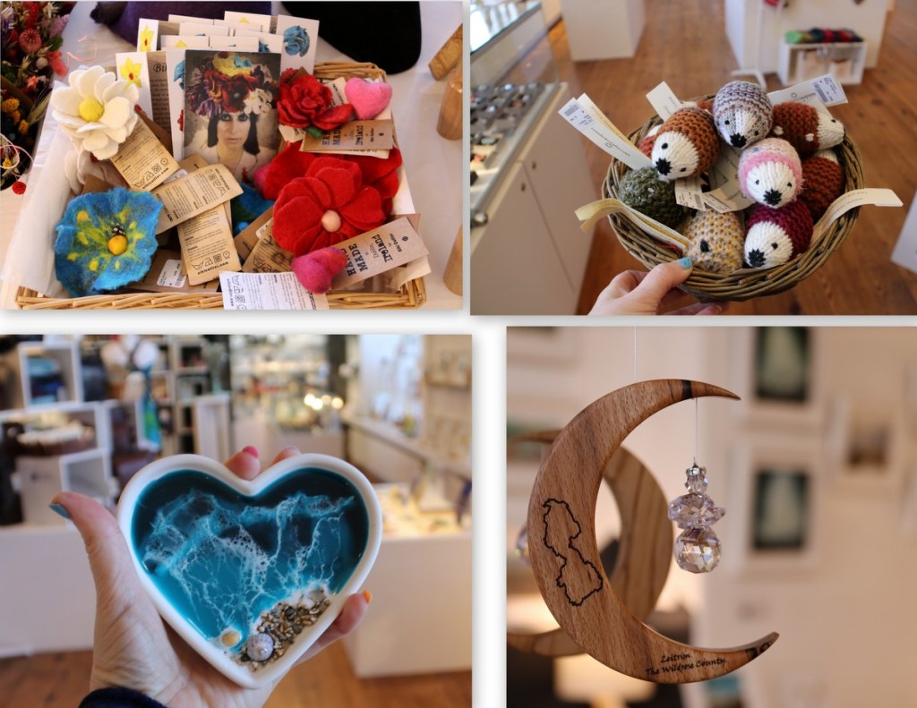The Leitrim Design House was established by the Local Enterprise Office, and it opened in 2000, it’s a treasure trove of beautiful Irish made products, from over 140 makers from all over Ireland. There is so much choice, including art, ceramics, jewellery, skincare, textiles and much more. I saw so many beautiful things, and you really will be spoilt for choice, the staff are friendly and helpful if you need a hand with anything. The building is bright and airy, it’s wheelchair accessible, and there’s even a coffee shop in the building, as well as an art gallery.