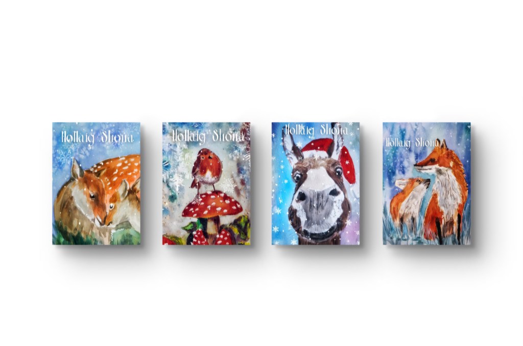 - Christmas Cards: Margaret’s collection of Christmas cards features her nature-inspired designs, making them a beautiful way to share the warmth of Irish artistry during the festive season. https://www.margaretrattiganart.com/products/pack-of-4-woodland-animals-christmas-cards-featuring-an-irish-greeting