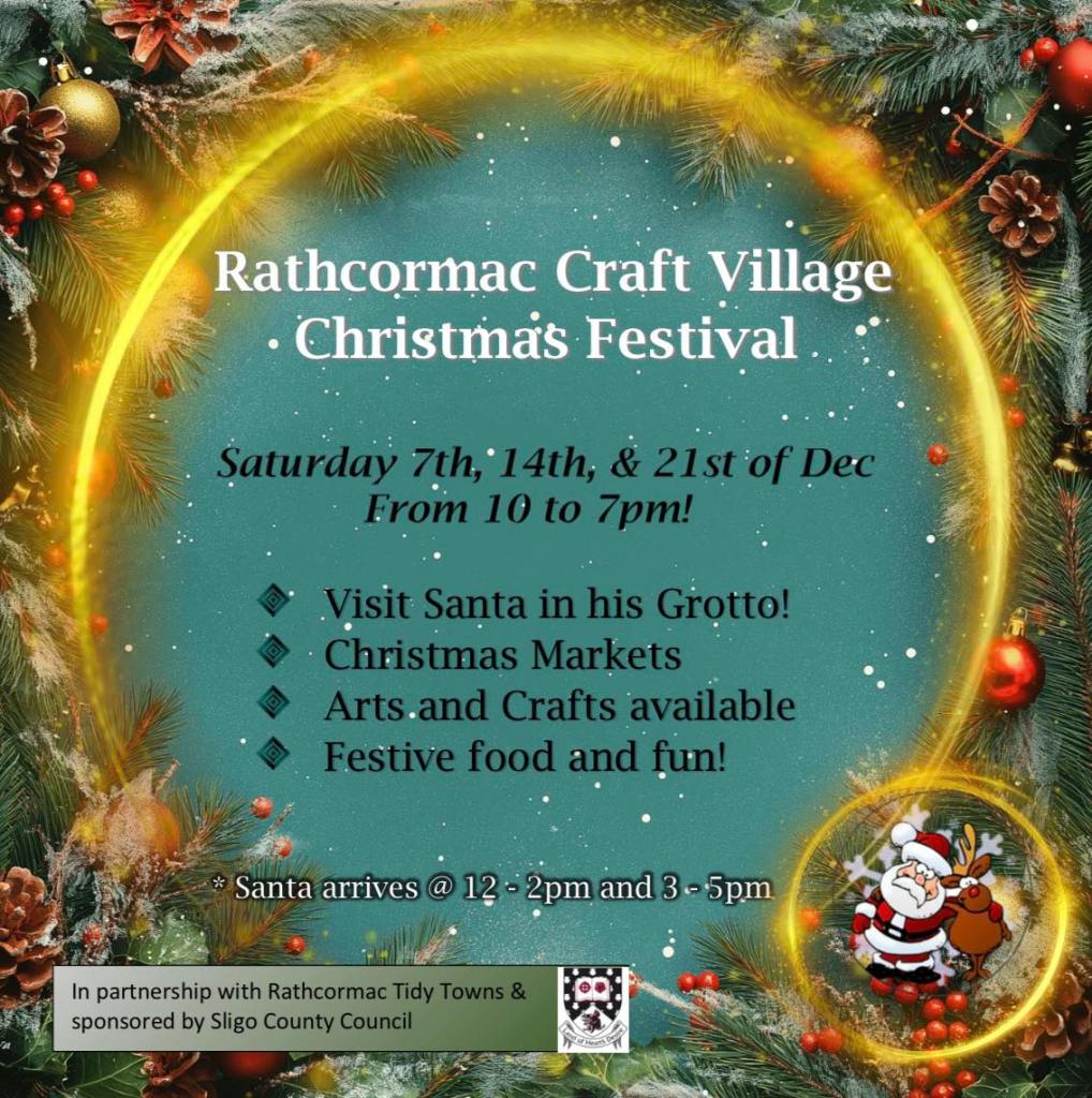 Rathcormac Craft Village Christmas Festival is on the 14th and 21st of December. Santa will be there too, details above. The 7th has been cancelled due to the storm.